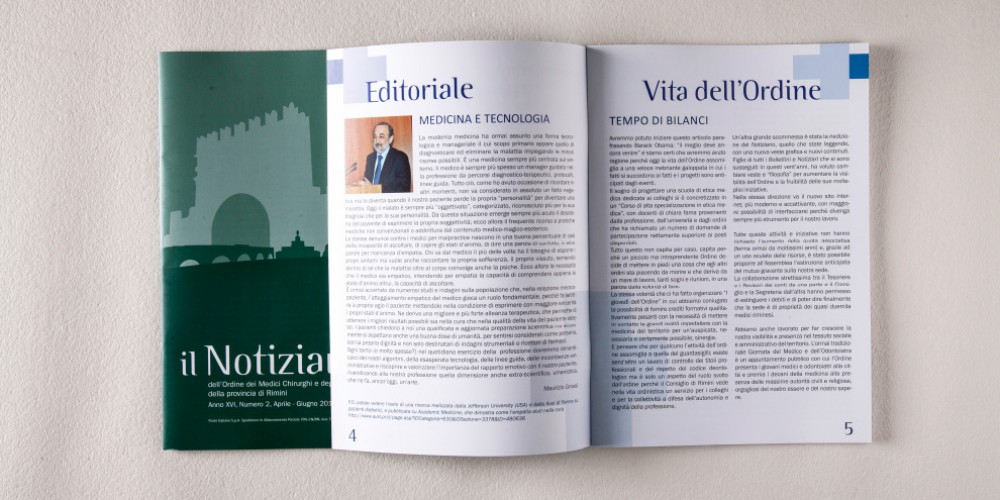 Si sa: al dottore non si può mentire. Perciò per curare il nuovo layout grafico dell’house organ dei medici riminesi, abbiamo dovuto riprendere in mano i libri di grafica e studiare tutte le evoluzioni che il periodico aveva visto nel tempo. Progettare e rinnovare tutta l’immagine coordinata ha richiesto un precisione quasi chirurgica.